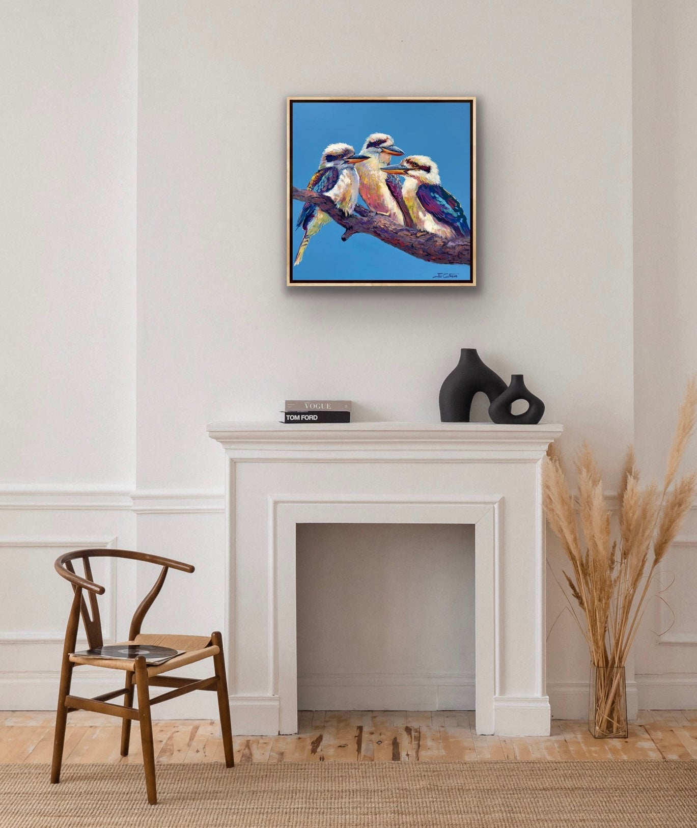 In this piece, I wanted to capture the playful spirit of the kookaburra — times three! These birds are full of character, and I imagined them as old friends sharing a laugh on a branch. Their energy is what inspired the bold, expressive brushstrokes and vibrant colours.