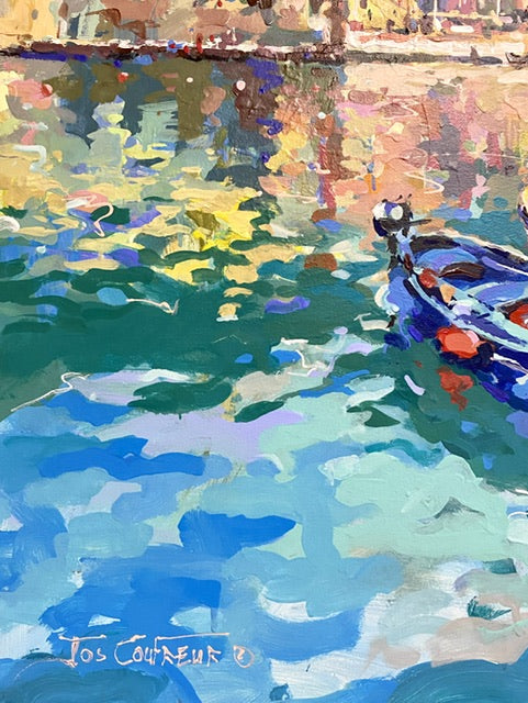 I paint with large brushes and bold loose brush strokes in vibrant colours.